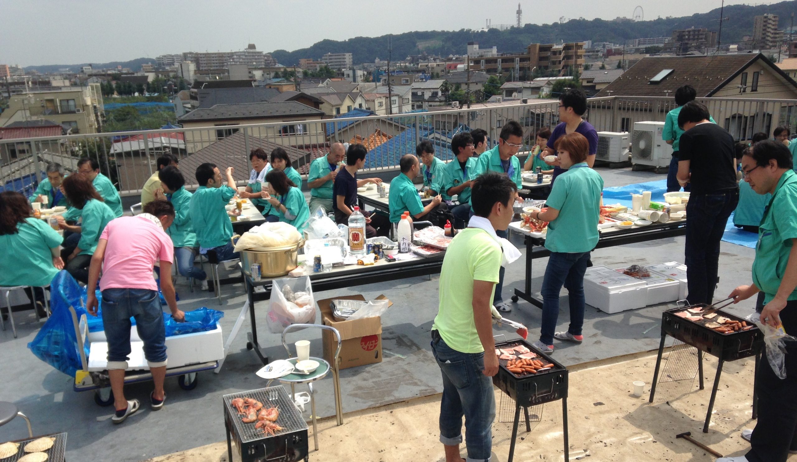 毎年9月は本社の全社員参加で屋上にてバーベキュー大会が開催しております。