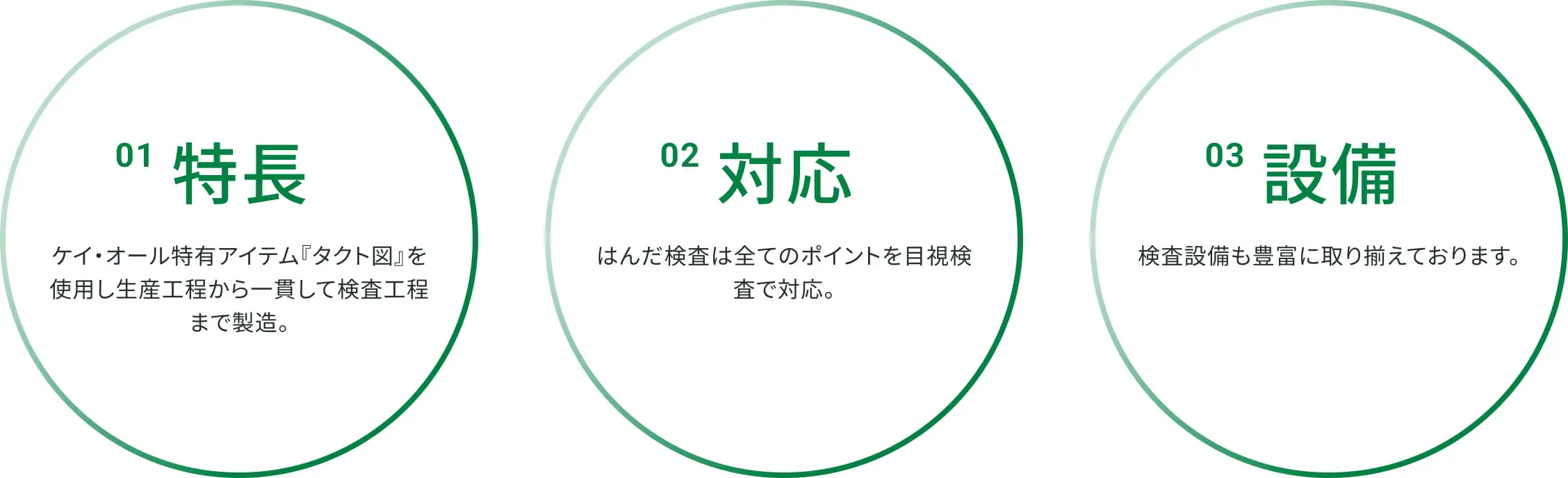 また、ケイ・オール特有アイテムの「タクト図」を使用した目視検査も合わせ、不良項目の流出を食い止めます。